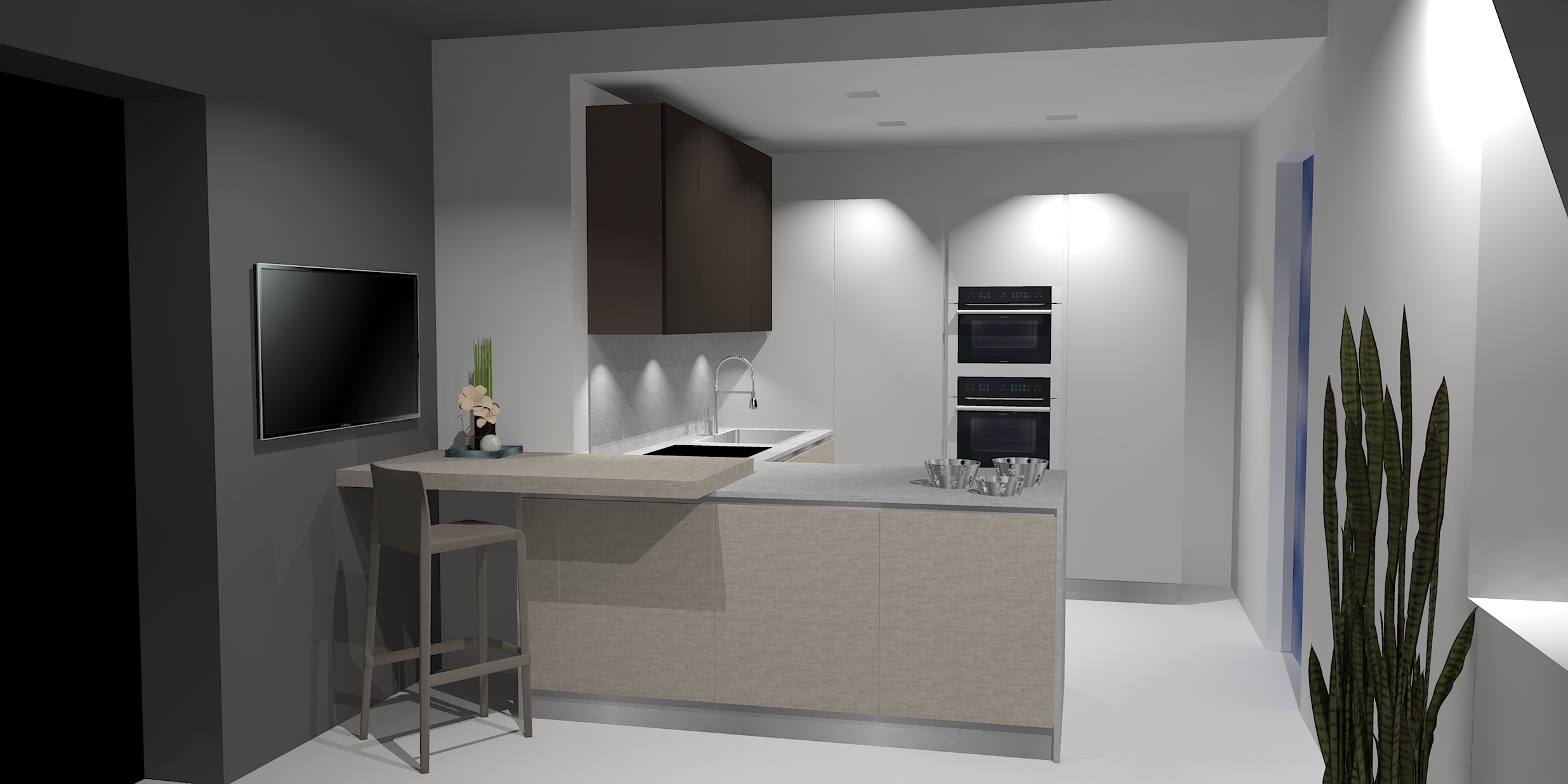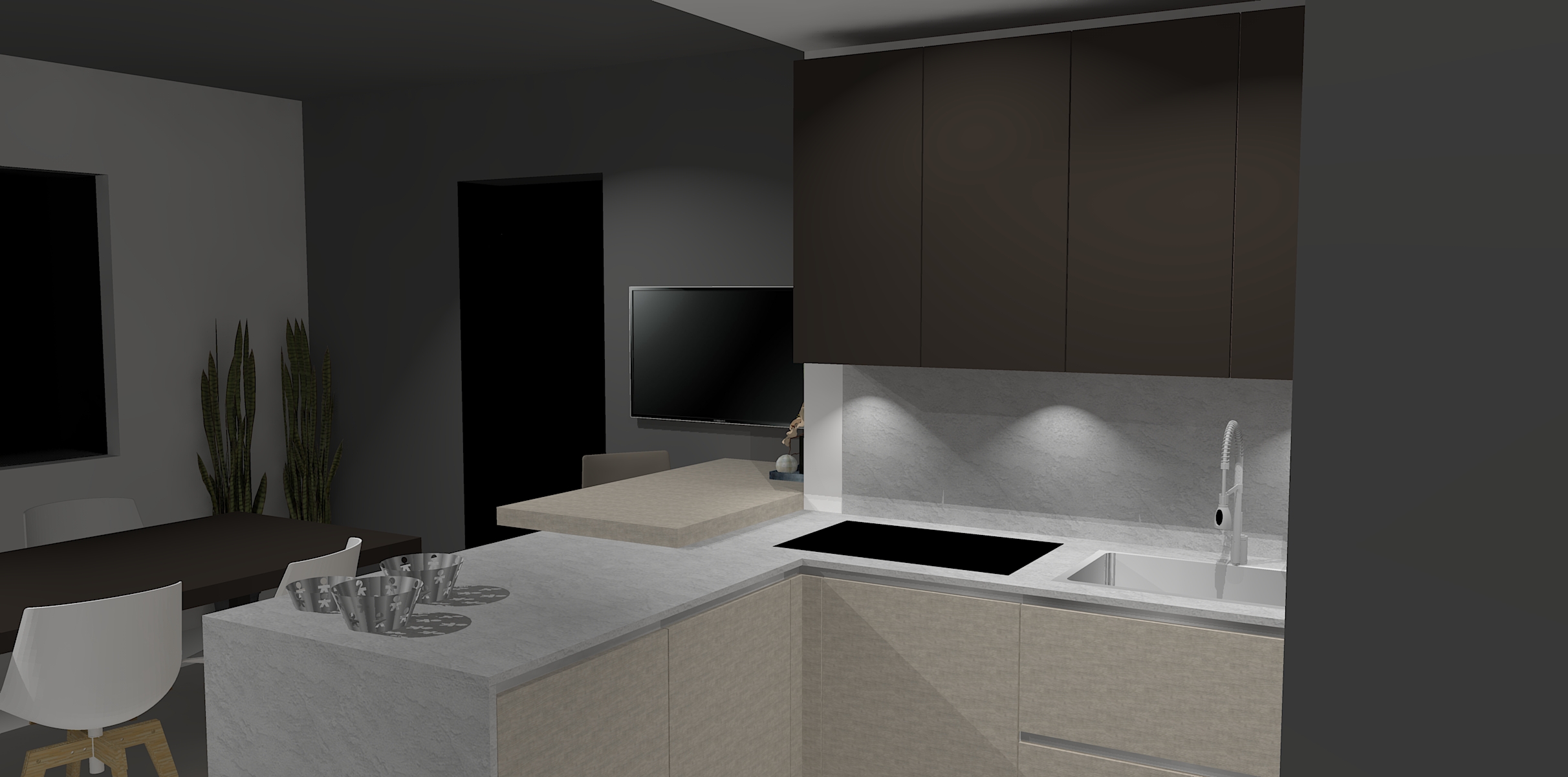 Progetto in ambito residenziale. I padroni di casa desideravano rinnovare la zona cucina e pranzo senza intervenire con opere murarie, comunque con un intervento deciso e radicale di tono più contemporaneo.